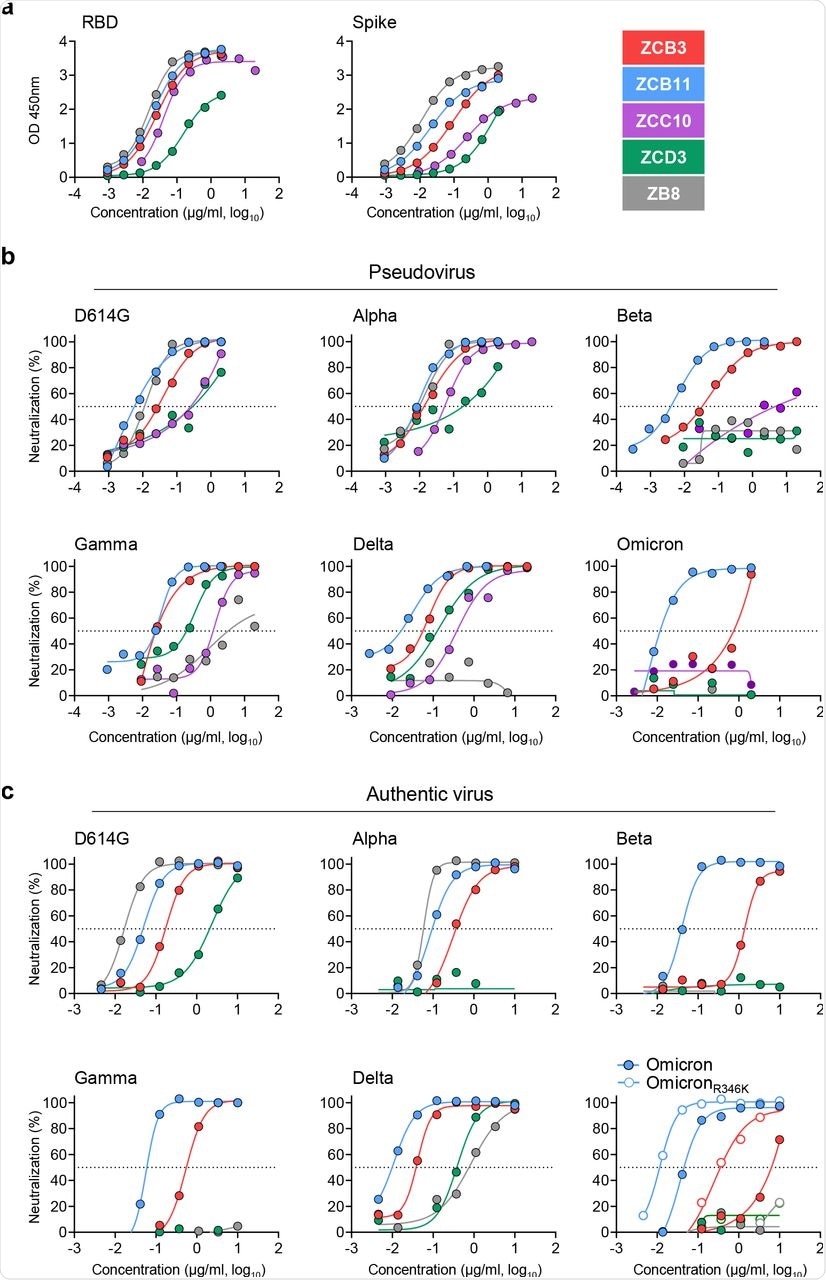 The study results demonstrated that the standardized two-dose BNT162b2 vaccination-induced S-specific memory B-cells, from which the researchers cloned an elite bNAb ZCB11, at about 130 days post the second vaccination. ZCB11 neutralized all SARS-CoV-2 VOCs, including Omicron and OmicronR346K, at comparable high potency in vitro and protected golden Syrian hamsters against the Omicron and Delta variants.