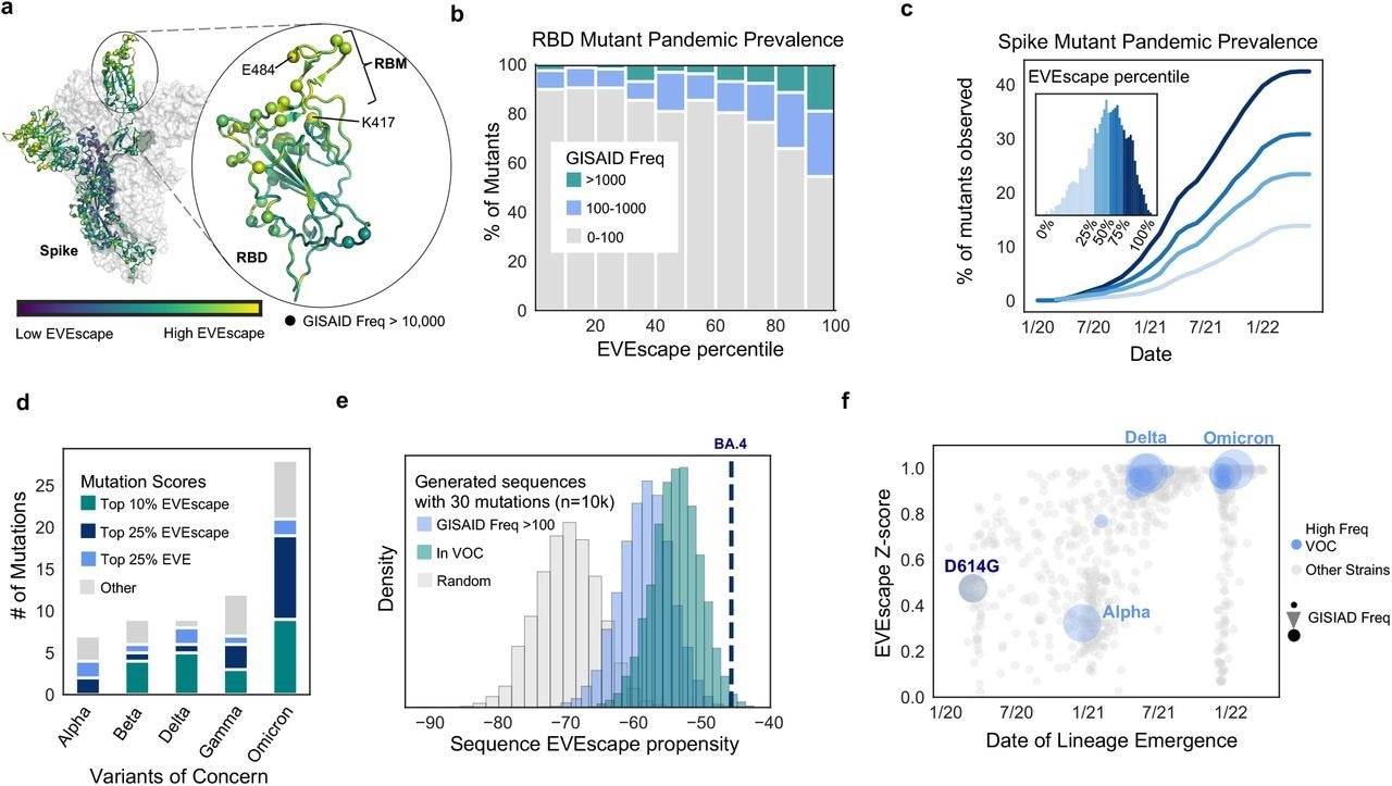 The EVEscape platform is capable of identifying the most concerning variants in the vast pool of available pandemic sequence data. This method provided predictions for all SARS-CoV-2 spike mutants, as well as strain-level forecasts for variants observed 1,000 times or more in GISAID. EVEscape will continue to be updated as new strains are identified.