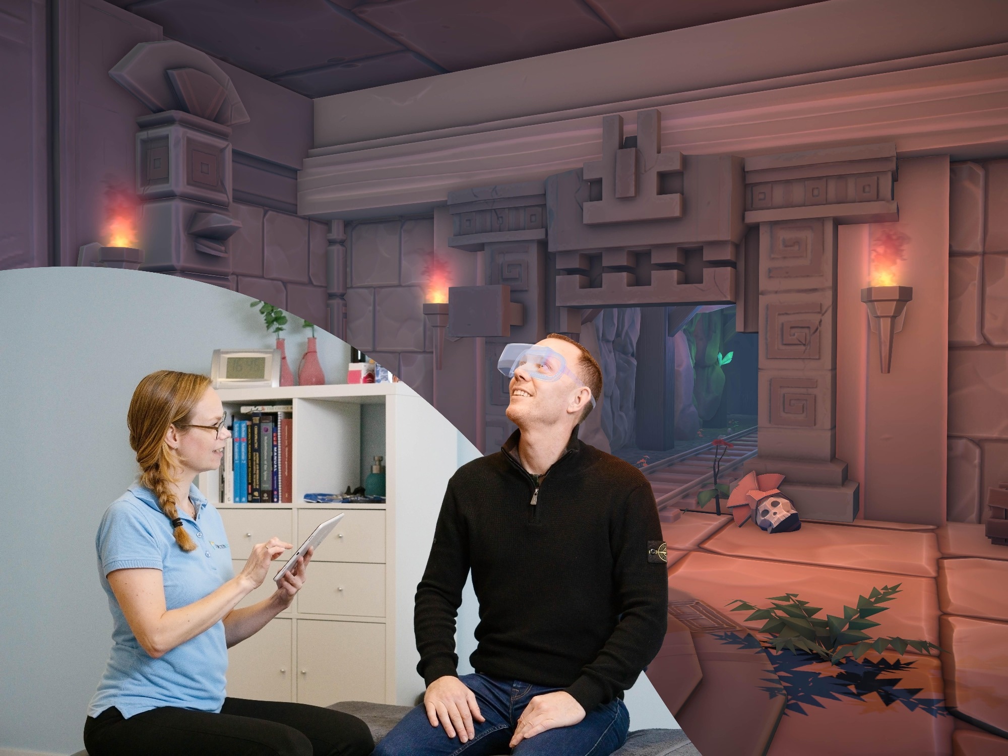 In 2014, I had my first virtual reality experience thanks to my husband Gert-Jan Brok. He is a game developer and an interaction designer. He is fascinated with human beings, human interaction with computers, and how to combine and optimize the capabilities of both. One day, he brought home a VR headset that you plug into your PC. For me, it was an epiphany, because I was suddenly completely thrown into that environment. I was relaxed. I wanted to move. And I thought, "Oh my God, if only I could use this with my patients”. I said that out loud, and then my husband replied, "Let's do it."