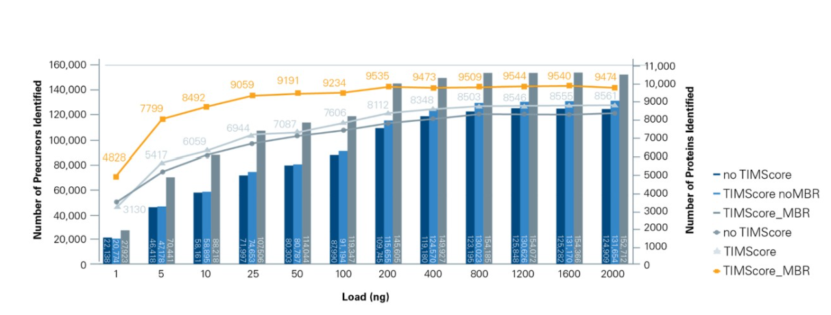 A tryptic digest of human cell line K562 was analyzed using a nanoElute system at 250 nL/min with 60 min separation time on an Aurora column (25cm, 75 μm ID, IonOpticks). timsTOF HT operated in dia-PASEF® mode using 100 ms TIMS separations. Data was processed with TIMS DIA-NN using a predicted library from uniprot (human reviewed). Image credit: Bruker Life Sciences Mass Spectrometry