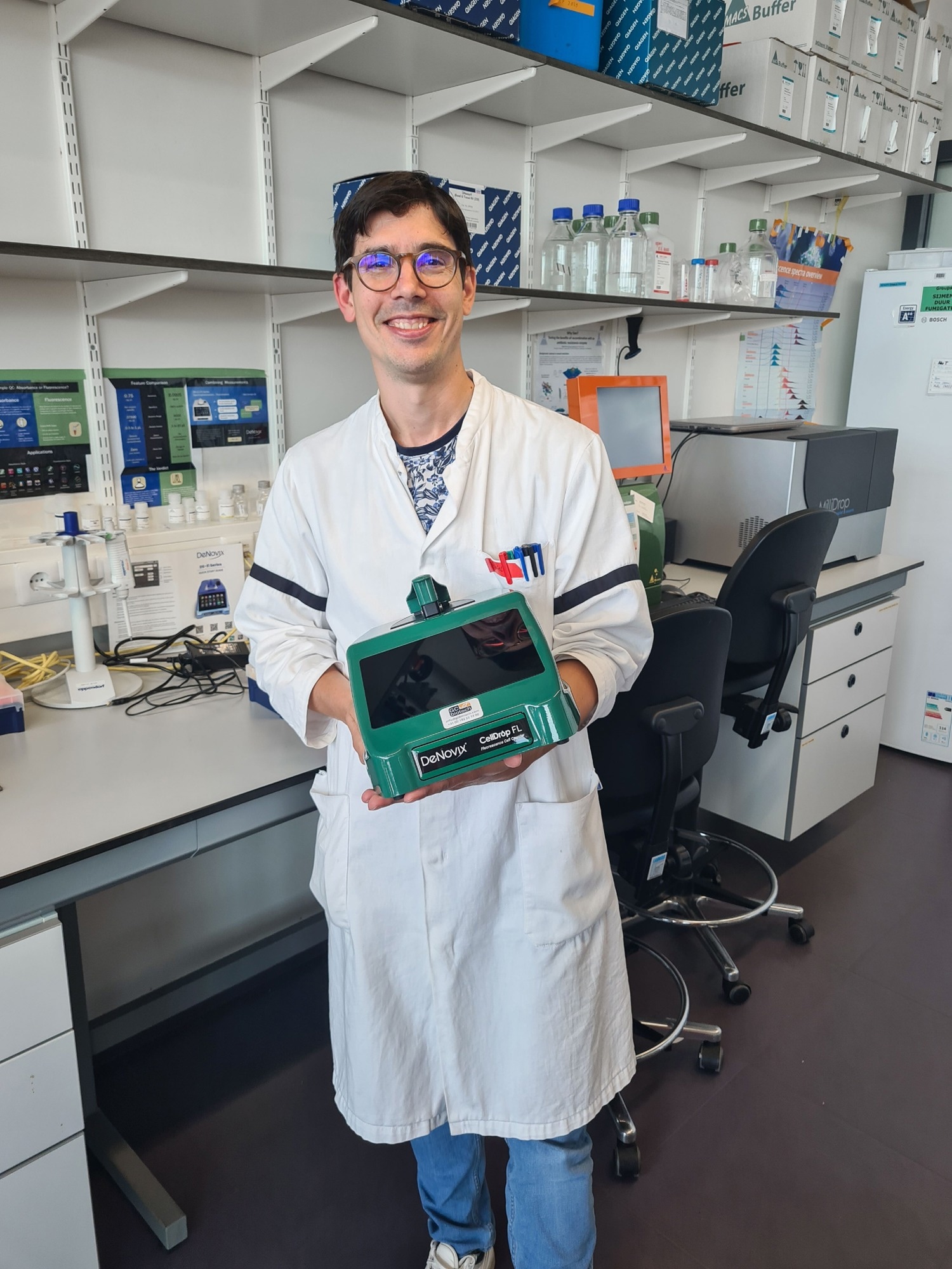 DeNovix Inc. is pleased to announce the winner of the Green CellDrop Automated Cell Counter Giveaway: Michiel Schrijen from Wageningen University, Netherlands! Selected at random from thousands of entries from scientists worldwide, the CellDrop will be housed in the Biosystematics Group at the university.