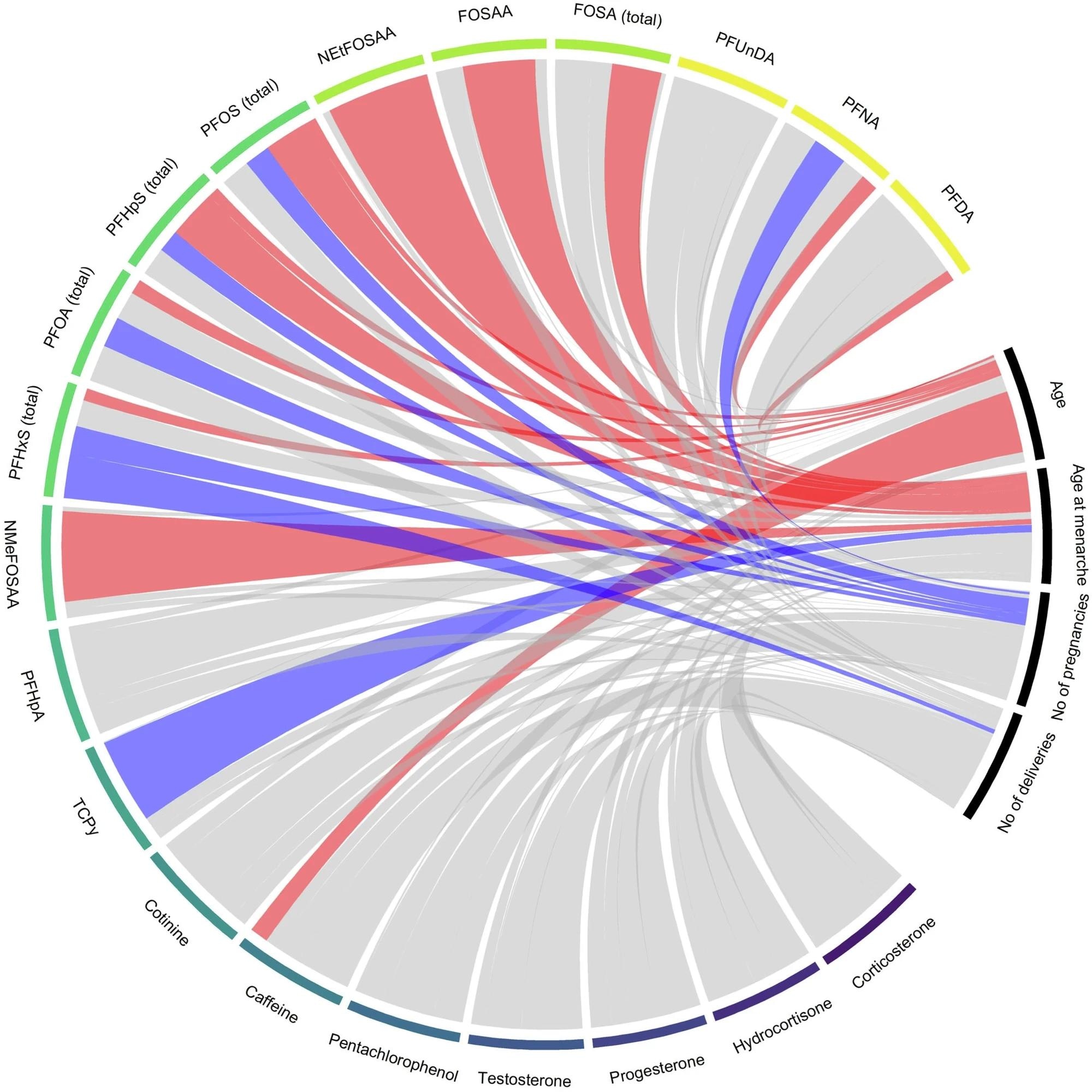 In the plasma samples, 55 targeted analytes from 13 chemical classes were detected. These included PFAS, pesticides, pharmaceuticals, dietary substances, and endogenous hormones such as progesterone and testosterone.