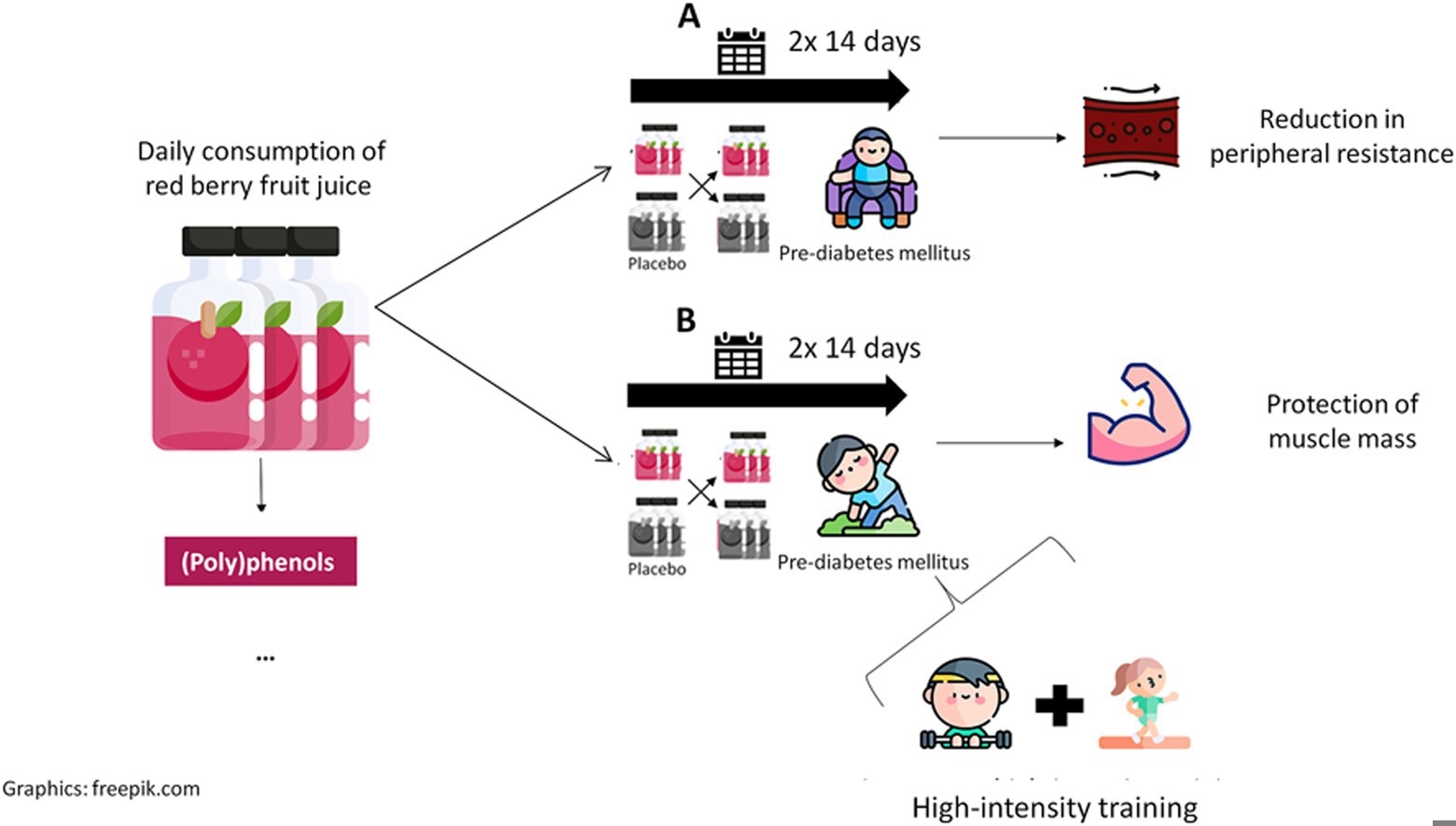 Study: Effects of two weeks of daily consumption of (poly)phenol-rich red berry fruit juice, with and without high-intensity physical training, on health outcomes in individuals with pre-diabetes mellitus. Image Credit: Flower_Garden / ShutterstockStudy: Effects of two weeks of daily consumption of (poly)phenol-rich red berry fruit juice, with and without high-intensity physical training, on health outcomes in individuals with pre-diabetes mellitus. Image Credit: Flower_Garden / Shutterstock