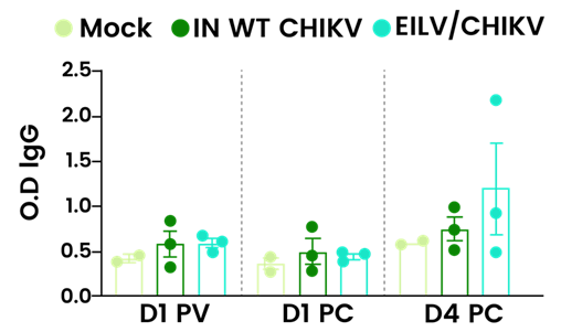 Figure 5. CHIKV E2 binding IgG responses at indicate time points by ELISA, pre-coated with recombinant CHIKV E2 protein (Sino Biological, 40440-V08B) 13. Image Credit: https://pmc.ncbi.nlm.nih.gov/articles/PMC11659317/