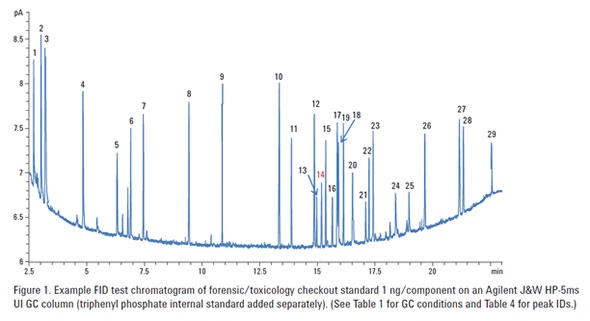 • K. Lynam. Semivolatile Analysis Using an Inertness Performance Tested Agilent J&W DB-5ms Ultra Inert Column. Application Note, Agilent Technologies, Inc. Publiction number 5989-8616EN (2008).