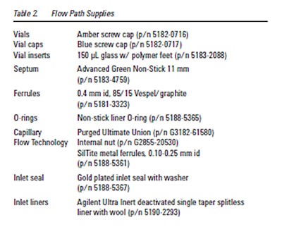 Testing was conducted using Agilent 7890A GC system that was equipped with a 7683B autosampler and a 5975C MSD.