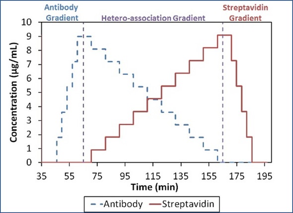 Figure 4. Composition-gradient method for quantifying the interaction between streptavidin and an anti-streptavidin antibody.
