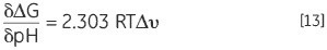 where Δv is the change in protonation. The change in stability for each pH unit is increased with the increasing difference in protonation upon denaturation.