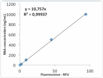 The Eppendorf BioSpectrometer fluorescence is compatible with the RNA detection kits from Life Technologies and Promega. Based on the sample analyses conducted on the Life Technologies kit, it may be concluded that standard curve can be produced by both quadratic and linear regression. In case of the Promega RNA kit, the analysis results of the linear regression or the standard curve exhibited substantial deviation from the nominal value.