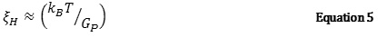 The value of xH can be obtained from the plateau modulus (Equation 5). In Equation 5, kB is the Boltzmann Constant and T is the temperature in Kelvin. The measured value of xH is in nanometers.