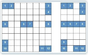 Figure 2. Positioning of the twelve PCR samples on the 64-well and the 32-well block, respectively.