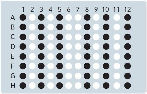 Figure 1. Positions indicated in black of the 96-well PCR plate were filled with 25μL water each.