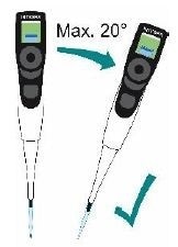 When the liquid is drawn, the inclination angle of the pipette also influences the liquid volume in the tip. The pipette should be held at a consistent angle, maximum 20° during the dilution process.