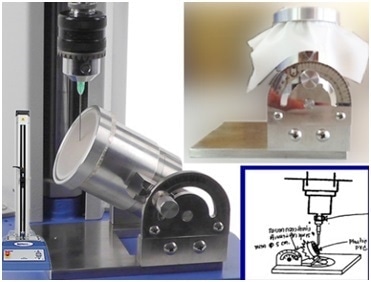A custom fixture was designed to permit controlled adjustment of the insertion angle of the test sample, normally a standard specification of 15 degrees is used. To reproduce the toughness characteristics of human skin, a PVC sheet was placed over a lower fixture with sufficient clearance within the fixture to allow full passage of the needle through the membrane.