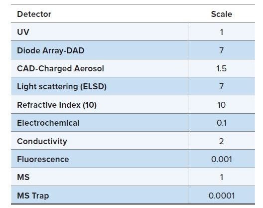 Table 2. General Sensitivity Overview-HPLC Detectors