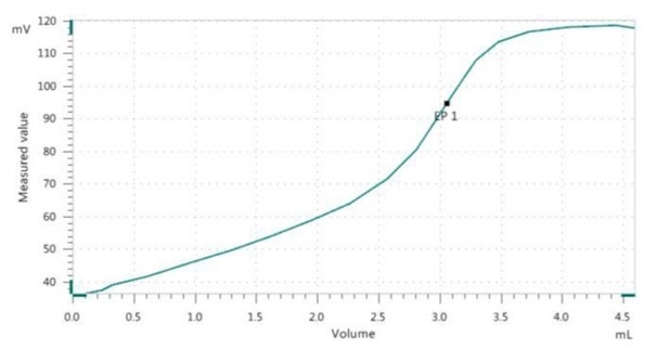 The pH of the mixture is further adjusted to around 8.5 using NaOH with 0.1 mol/L concentration. The titration is then carried out using Cu-ISE as the indicator and CuSO4 with 0.05 mol/L concentration as the titrant until after the equivalence point is achieved.