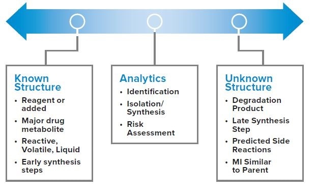 Thus MI detection and quantitation requires the use of knowledge gained from multiple fields, including synthesis, toxicology, analysis and manufacturing, to evolve the right mix of techniques to detect and measure these compounds, while continuing to test the drug product throughout the process of drug development.