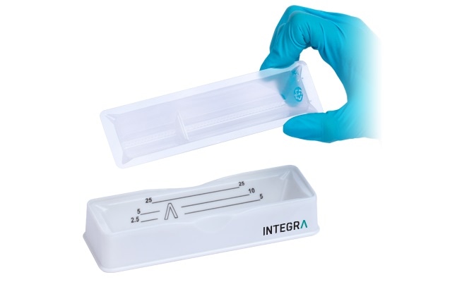 Pour-back spouts are moulded into the corners, as with other reservoirs in the range, which facilitate convenient and spill-free return of unused reagent to the source container. The new reservoir is compatible with a wide range of chemicals as it is available in both polystyrene and polypropylene.