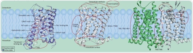Endogenous activators bind to the cognate ‘orthosteric’ site of a GPCR, resulting in a conformational alteration in the GPCR which enables it to interact with intracellular transducers such as heterotrimeric G proteins. This is termed the ‘allosteric transition’. This article outlines several key insights into allosteric mechanisms of GPCR biology.