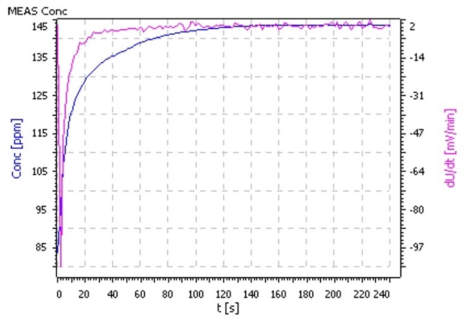 • After the addition of c(NaOH) = 10 mol/L, the stabilization of the measuring signal takes some time. Hence, it is necessary to increase the minimum waiting time to one minute.