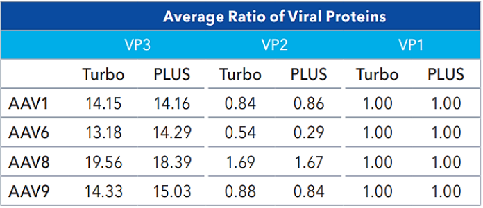 Capsid protein ratios (Turbo vs PLUS). Source: Bio-Techne