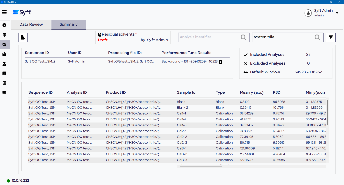 The SyftAuditTracer software, with its advanced, novel user roles and permissions, grants controlled access to advanced capabilities with comprehensive administrative features, bringing the rapid, user-friendly SIFT-MS to the regulated pharmaceutical laboratory for the first time.