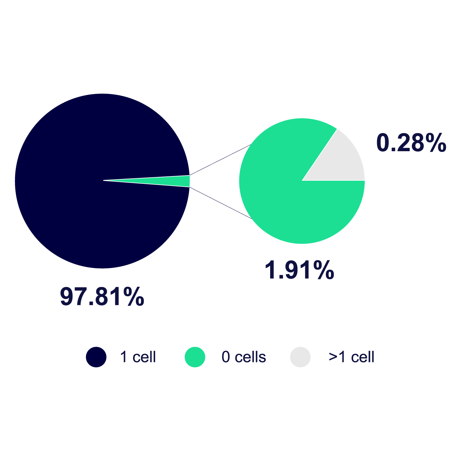 CHO-GFP cells were dispensed in 3 independent experiments with 3 UP.SIGHT 2nd Gens each. In total, 45 384-well plates (17280 wells) were analyzed. The number of cells deposited in each well was determined by well bottom imaging with a NYONE imager. Results were curated manually to correct algorithm-caused mistakes. Image Credit: CYTENA GmbH