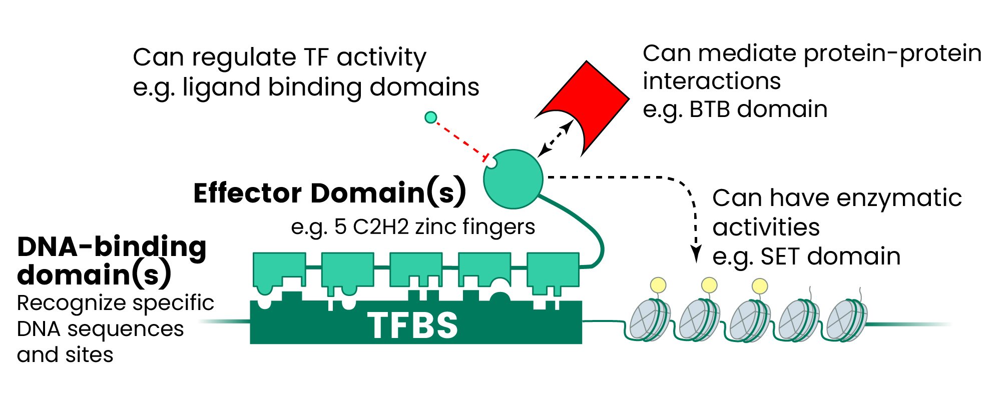 Figure 1. The Human TF Repertoire1. (A) Schematic of a prototypical TF. (B) Number of TFs and motif status for each NA-binding domain (DBD) family. Inset displays the distribution of the number of C2H2-ZF domains for classes of effector domains (KRAB, SCAN, or BTB domains); “Classic” indicates the related and highly conserved SP, KLF, EGR, GLI GLIS, ZIC, and WT proteins. Image Credit: Sino Biological Inc.